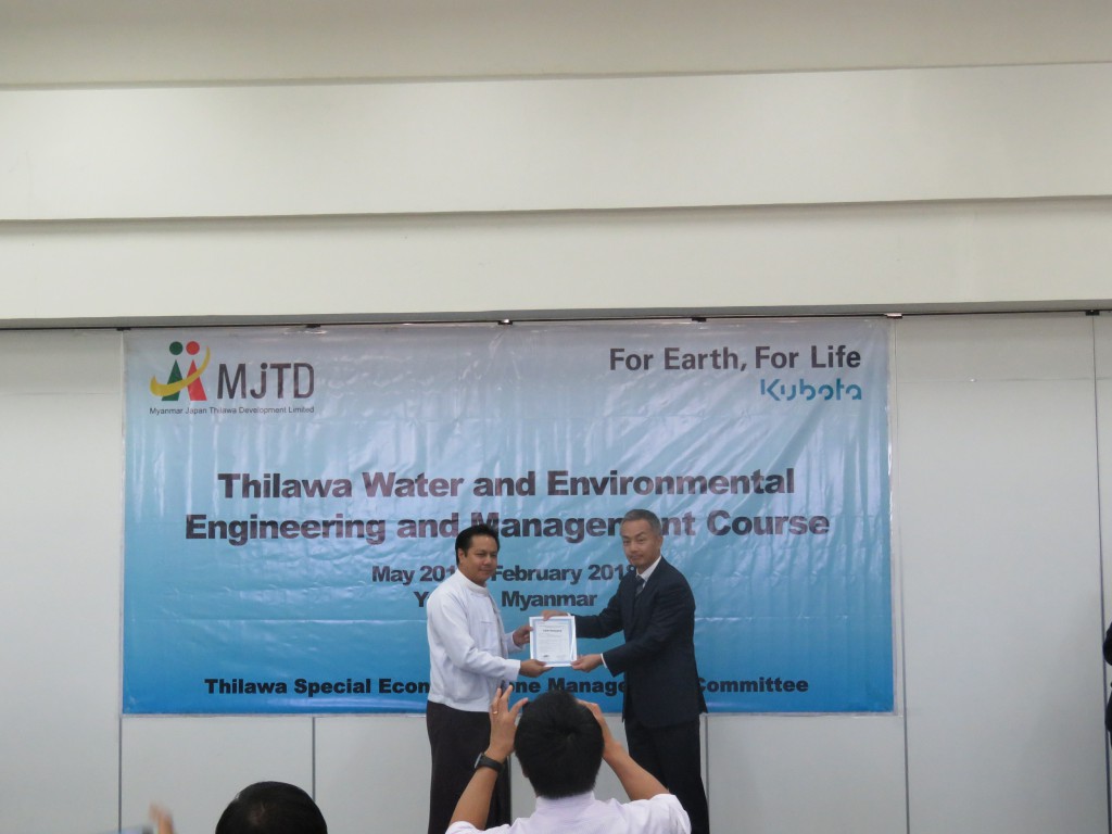 The certificates were awarded by the President and CEO of MJTD Mr. Tomoyasu Shimizu, with Mr. Hiroshi Omori (KUBOTA Corporation), Dr. Than Than Thwe from TSMC and U Thein Min from YCDC sharing their remarks at the event.