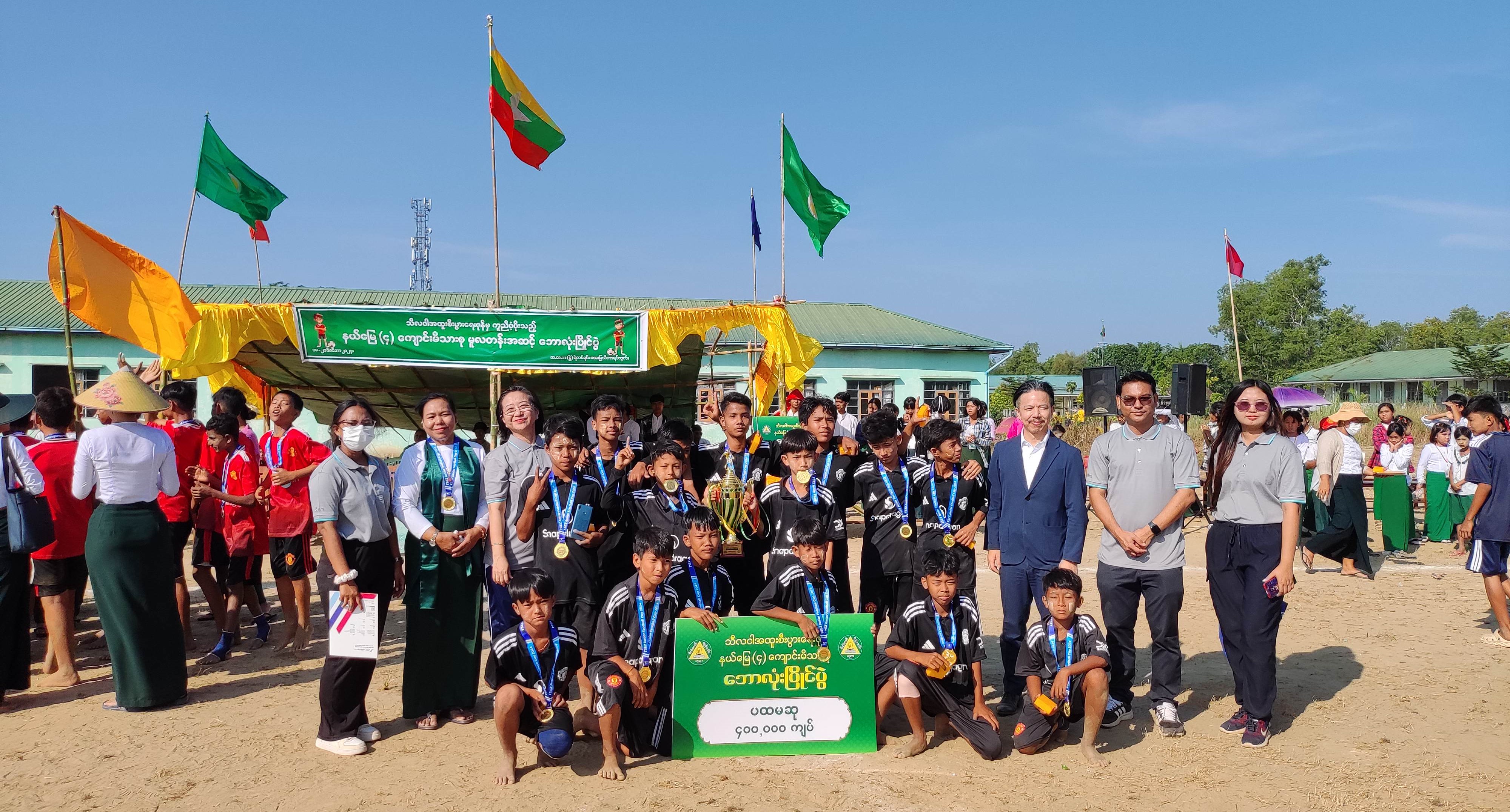 Primary Students from Aye Mya Thida Ward, Shwe Pyi Thar Yar Ward, Kar Kan Date Village, and Adduttaw Village came together to compete in this spirited three-day event. The tournament included eight teams, including BEPS Kyar Kan Date, BEHS (Br) Aye Mya Thida, BEPS Thilawa, BEPS Phalan, BEPS Tat Yar Kone, BEPS Thilawa Kone Tan, and BEMS (Br) Adduttaw participated by showing their remarkable skills on the field.