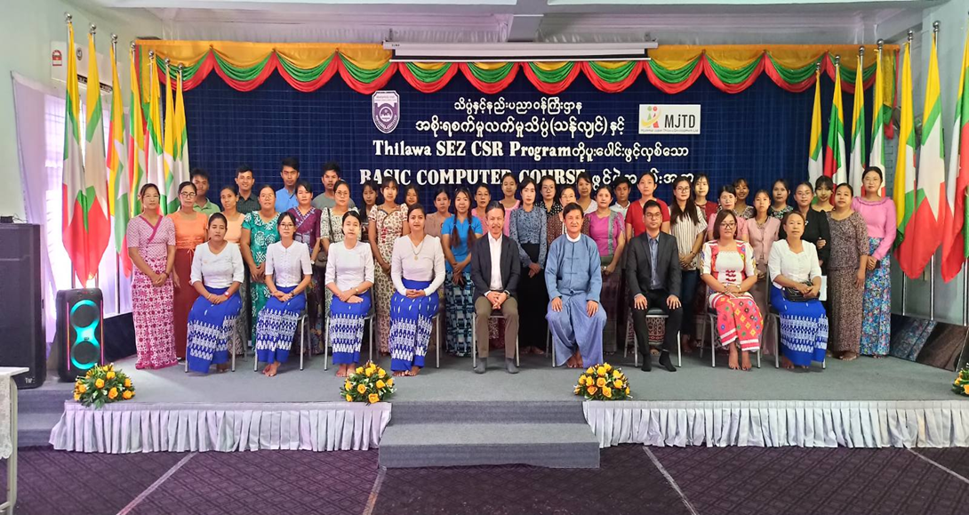 The Thilawa Special Economic Zone (TSEZ) is pleased to announce the successful launch of the Computer Basic Course, a collaboration between GTI (Thanlyin) and the TSEZ CSR Program, held at GTI-Thanlyin on 1 March 2025. This initiative is part of TSEZ’s commitment to enhancing vocational skills and expanding job opportunities for neighboring communities, contributing to their economic growth and well-being.