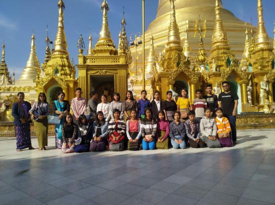 In this trip, total 22 students had heartily enjoyed visiting to Shwe Dagon Pagoda, National Museum and playing bowling at the bowling center. The intended trip is to improve general knowledge and communication of students, to build a good relationship among each other and to become active and talented students.