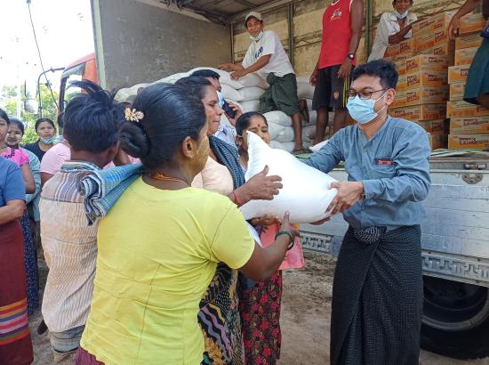 Thilawa Special Economic Zone donated 800 packets of rice (20 kg in one packet) and noodle 400 boxes to Shwe Pyi Tar Yar Ward, Shwe Pyouk Village , Aye Mya Thida Ward, and Alun Sut Village on 5th and 6th May 2021 as hardship assistance for communities.