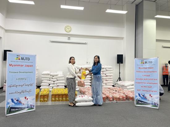 မြန်မာ ဂျပန် သီလဝါဒီဗီလော့မန့် လိမိတက် (MJTD) ရှိ ဝန်ထမ်းများ၏ သက်သာချောင်ချိရေးအတွက် ဒုတိယအကြိမ် ဆန်၊ ဆီနှင့် ခေါက်ဆွဲခြောက်များ ထောက်ပံ့ပေးအပ်ခြင်းကို ဇန်နဝါရီ ၃ဝ ရက်နေ့တွင် MJTD Multipurpose Hall ၌ ကျင်းပပြုလုပ်ခဲ့ပါသည်။ ထိုသို့ ထောက်ပံ့ပေးအပ်ရာတွင် ဝန်ထမ်းအင်အား (၁၂ဝ) ကျော်အတွက် ဆန် (25 kg ပါ ၂ အိတ်)၊ မြေပဲဆီ ၃ လီတာ နှင့် အသင့်စား ခေါက်ဆွဲခြောက်များကို ဝန်ထမ်းတစ်ဦးဆီတိုင်းသို့ ပေးအပ်ခဲ့ခြင်းဖြစ်ပြီး ၂ဝ၂၂ ခုနှစ်၊ စက်တင်ဘာလကလည်း ဝန်ထမ်းများ အတွက် ဆန်နှင့် ဆီများအား ပထမအကြိမ်အဖြစ် ပေးအပ်ခဲ့ပါသည်။ ခက်ခဲကျပ်တည်းနေသည့် ကာလအတွင်း ဝန်ထမ်းများအတွက် မေတ္တာဖြင့် ထောက်ပံ့ပေးအပ်ခဲ့သော မြန်မာ ဂျပန် သီလဝါ ဒီဗီလော့မန့် လိမိတက် မိသားစု၏ ပီတိဖြစ်ဖွယ် ပုံရိပ်များကို မှတ်တမ်းတင်ဖော်ပြအပ်ပါသည်။