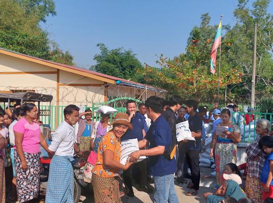 The outreach program aims to distribute a 12-kg rice bag to each of approximately 2,200 households in the following areas: Shwe Pyauk Village Tract, Aye Mya Thida Ward, Shwe Pyi Thar Yar Ward, Ah Lwan Suk Village, and Zone A & Zone B (PAPs). Additionally, teachers from seven community schools, four monasteries around the Thilawa SEZ, and a monastery-based orphanage school was also included in the distribution efforts.