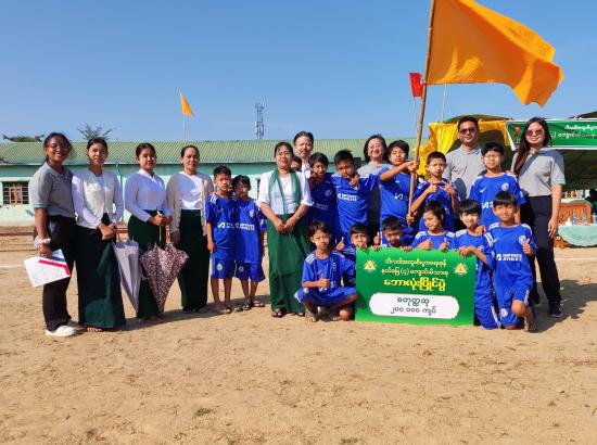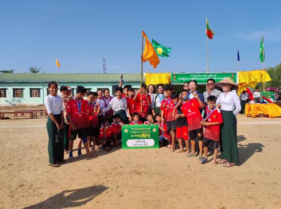 Primary Students from Aye Mya Thida Ward, Shwe Pyi Thar Yar Ward, Kar Kan Date Village, and Adduttaw Village came together to compete in this spirited three-day event. The tournament included eight teams, including BEPS Kyar Kan Date, BEHS (Br) Aye Mya Thida, BEPS Thilawa, BEPS Phalan, BEPS Tat Yar Kone, BEPS Thilawa Kone Tan, and BEMS (Br) Adduttaw participated by showing their remarkable skills on the field.