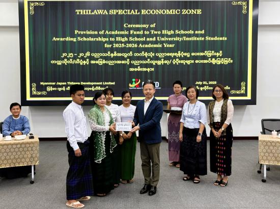 The Thilawa Special Economic Zone (TSEZ) proudly hosted an Academic Fund Awarding Ceremony at MJTD’s Multipurpose Hall on 31st July 2025, celebrating its continued commitment to educational development in the surrounding community.