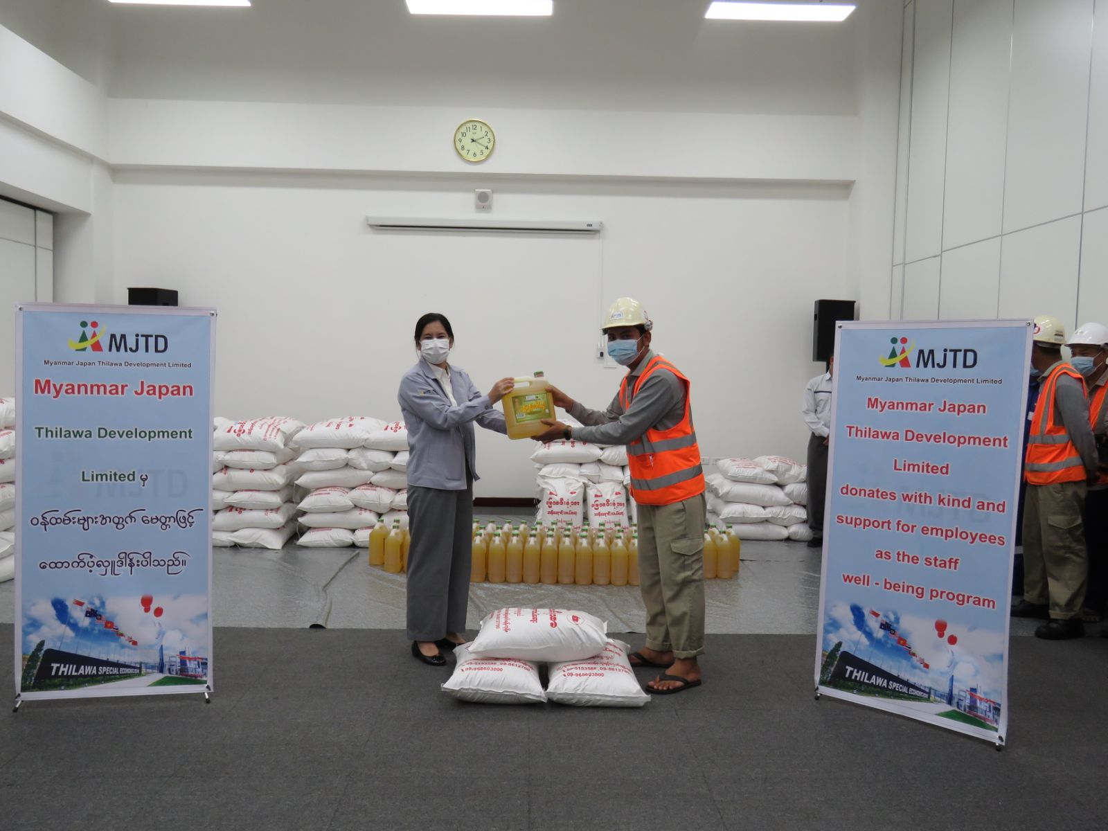 ခက်ခဲကျပ်တည်းနေသည့် အချိန်ကာလဖြစ်သည့် အားလျော်စွာ မြန်မာဂျပန် သီလဝါ ဒီပလော့မန့် လီမိတက် (MJTD) မှလည်း ဝန်ထမ်းပေါင်း (၁၂၀) ကျော်အတွက် စားဝတ်နေရေး အဆင်ပြေစေရန် ရည်ရွယ်၍ ဆန်နှင့် ဆီများကို ဝန်ထမ်းတစ်ဦးချင်းစီအား ထောက်ပံ့ပေးအပ်ခဲ့ပါသည်။