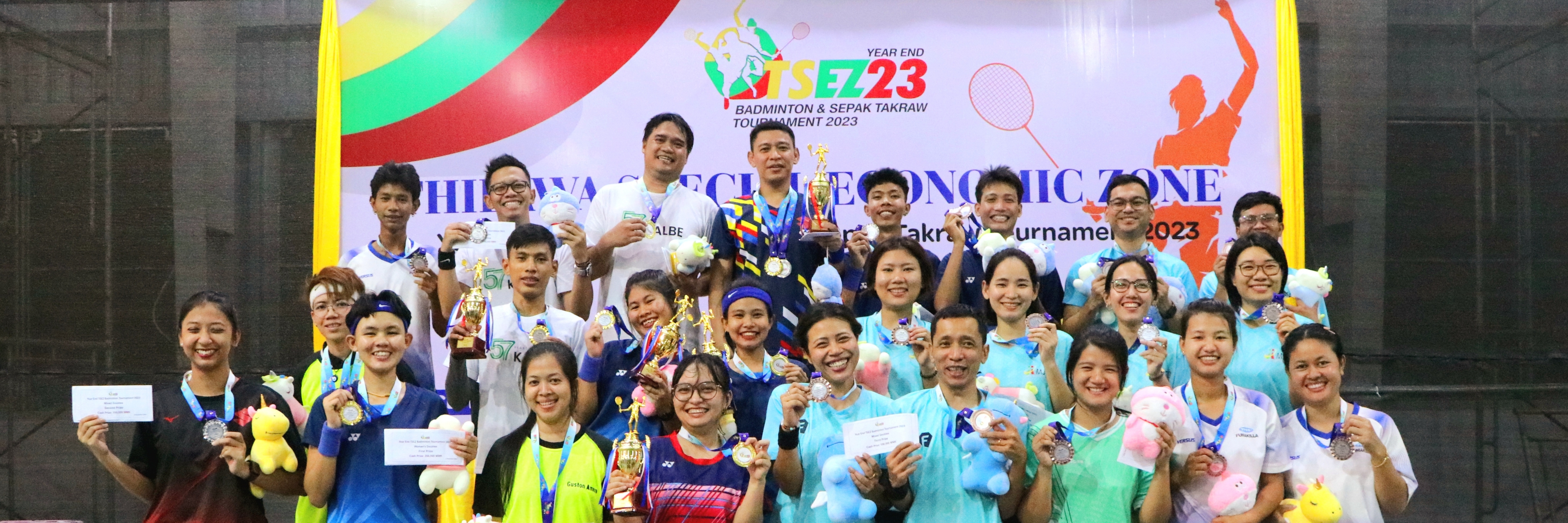 The Year End TSEZ Badminton Tournament 2023 was successfully hosted on December 2 and 3, commencing from 8:00 AM on each day at Rental Factory C, located in the Thilawa Special Economic Zone. The purpose of sports tournament is to foster strong relationships among Thilawa SEZ Locators through sports activities, cultivate a positive image for Thilawa SEZ by encouraging increased cooperation among the locators in future socially responsible initiatives, encourage All Thilawa SEZ employees to engage in physical activities essential for overall well-being, encompassing both physical and mental health and all the Locators belong to be as “One Team” named “Thilawa SEZ”.