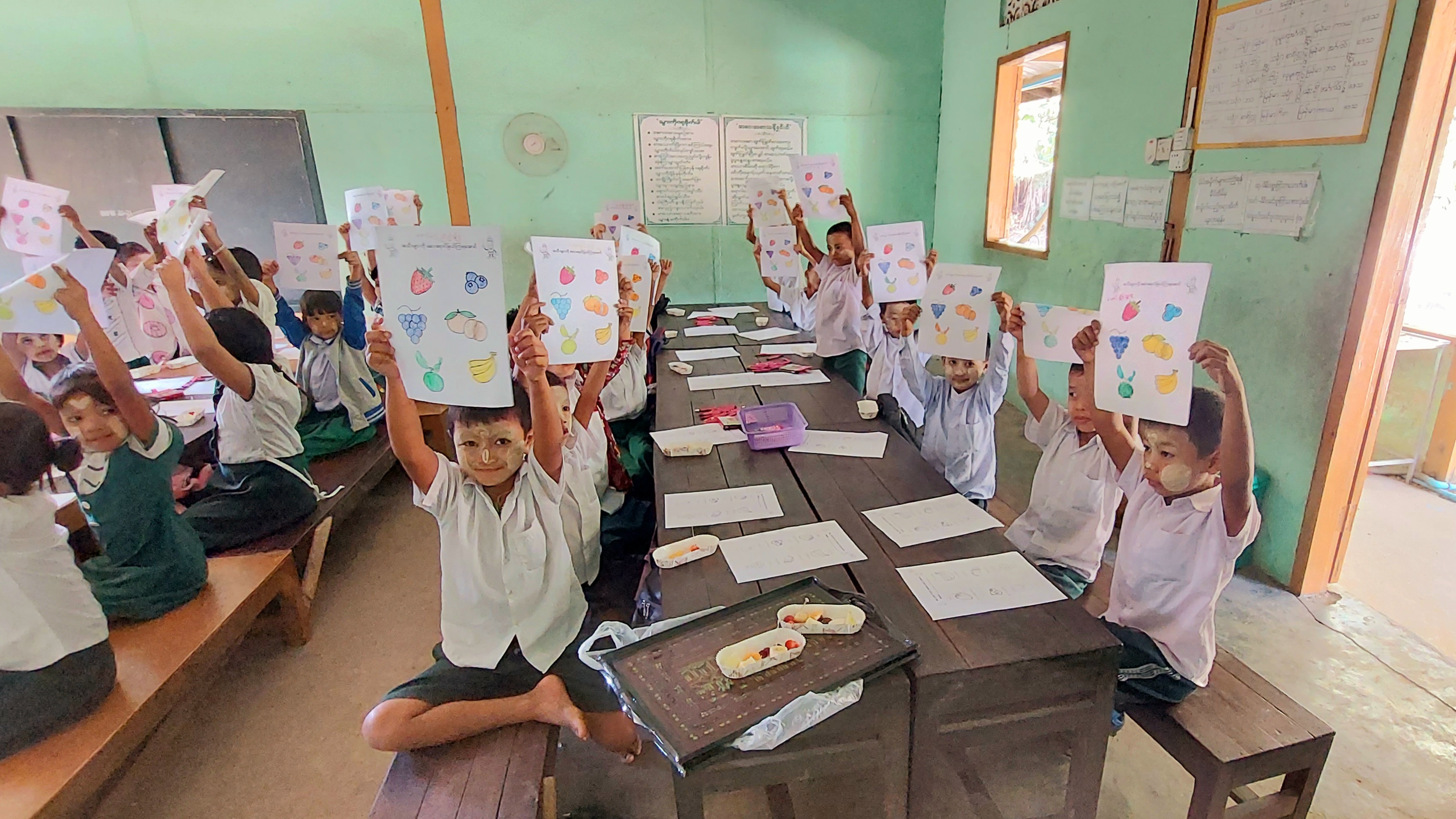 On February 2nd, the skill development activity was facilitated for a total of 146 students, including kindergarten and grade-1 students from two primary schools in the nearby Thilawa SEZ of Ah Lwan Suk Village and Aye Mya Thida (Pha Lan) Ward. The Community Relations Department spearheaded the event, with participation from volunteers from MJTD and locators Kianjoo Can Myanmar Co., Ltd, Boxpak Myanmar Co., Ltd, and Indorama Ventures Packaging Myanmar Ltd, providing support and actively engaging with the children throughout the entire activity.